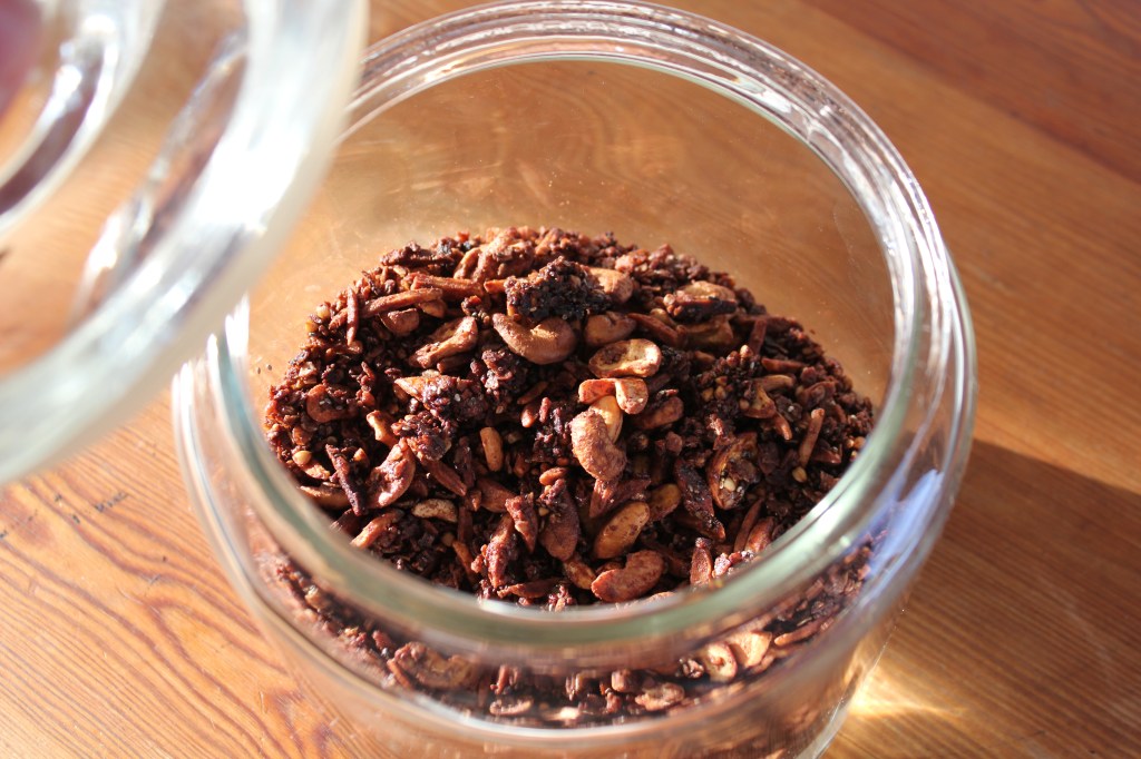 - Das Granola 30-40 Minuten im Ofen rösten.