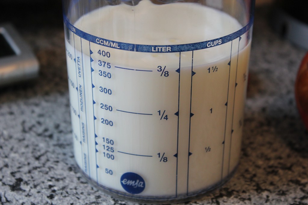 - Buttermilch und flüssige Butter nach und nach unterrühren. VORSICHT: Das Fett darf nicht zu heiß sein, sonst gerinnt das Ei.