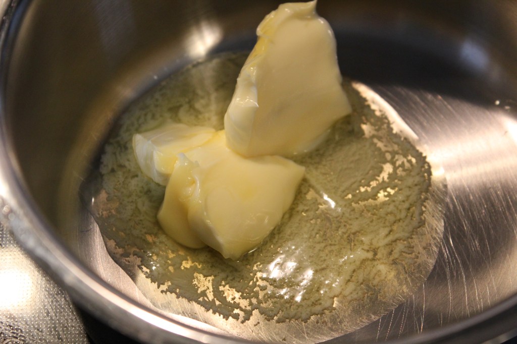 - Erhitze danach eine große beschichtete Pfanne (mittlere Temperatur).