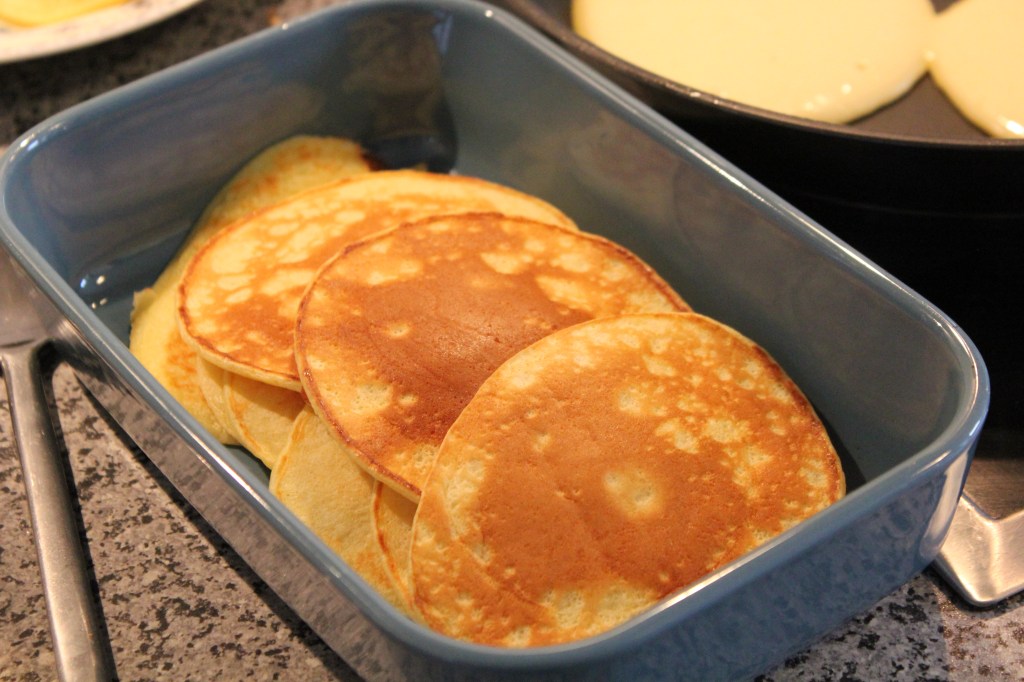 Zu einem Brunch sind diese Pancakes toll. Man bereitet den Teig und die gewünschten Beilagen zu und beim Event können sich die Gäste selber frische Pancakes backen (oder backen lassen 😉).