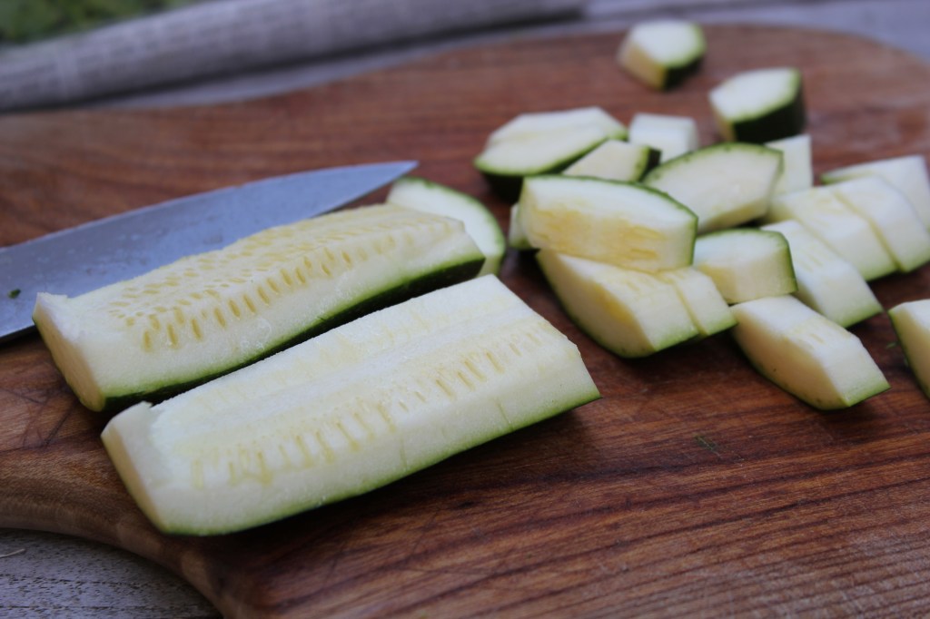 - 1 Zucchini (ca. 200 g; evtl. etwas die „Kerne“ entfernen- siehe Foto)