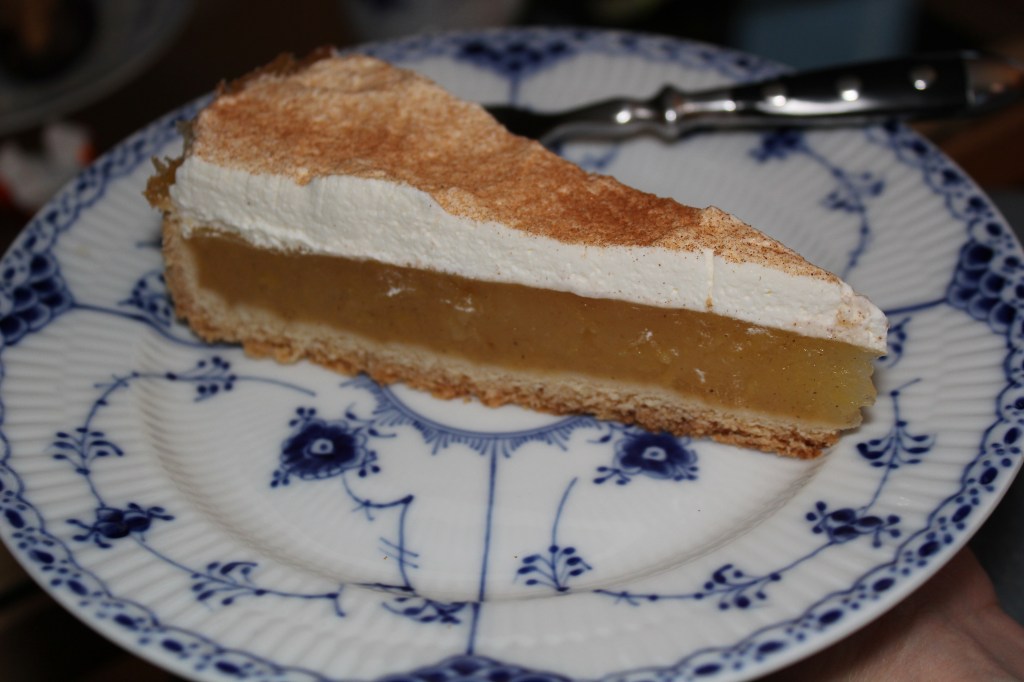 - Die heiße Apfel-Sekt-Zucker-Mischung wird in den Teigrand gefüllt. VORSICHT: Die Masse ist sehr heiß!