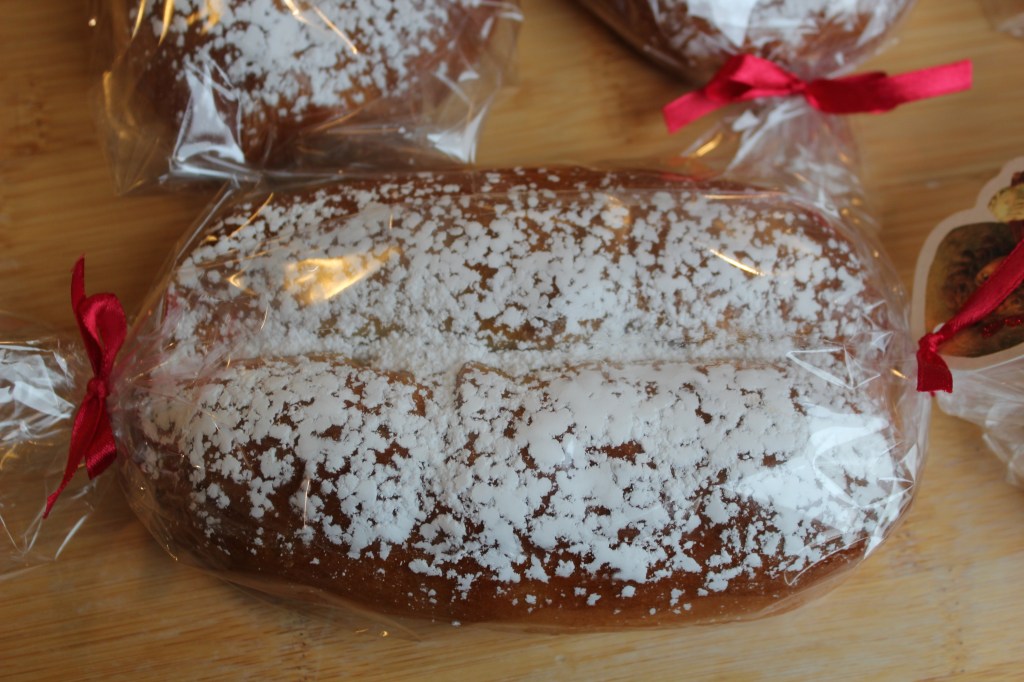 - Ist der Stollen abgekühlt, wird er zuletzt mit Puderzucker bestäubt. Nun ist er fertig zum genießen.